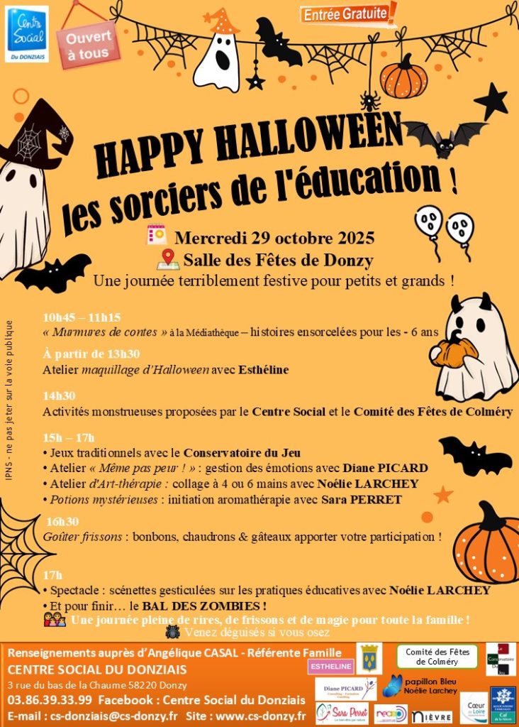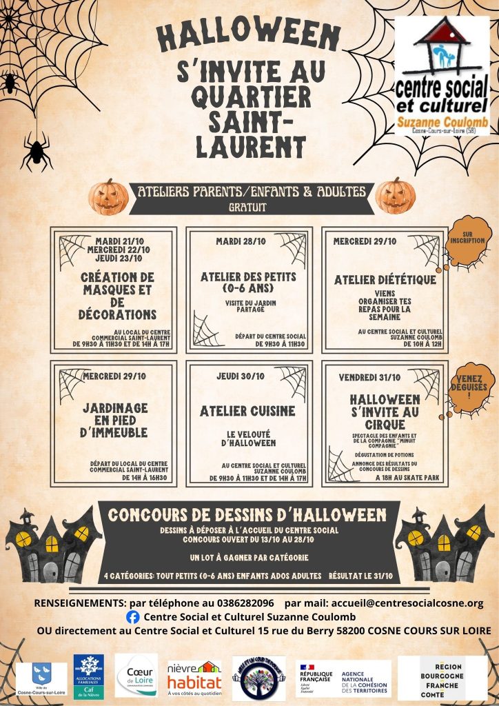 Les centres sociaux de Cosne, Donzy et Pouilly vous proposent des activités gratuites pour toute la famille pendant les vacances : ateliers, spectacles, cuisine, concours de dessins… 👻